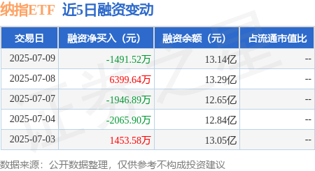 本站消息,7月9日,纳指ETF(159941)融资买入2.4亿元,融资偿还2.55亿元,融资净卖出1491.52万元,融资余额13.14亿元。